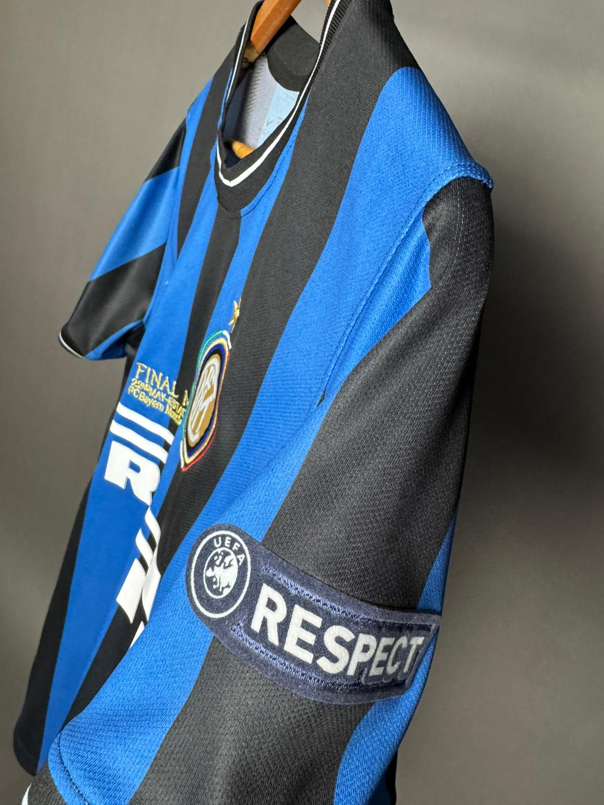 تيشيرت انتر ميلان الزي الأساسي بملصقات نهائي دوري أبطال اوروبا لموسم 2010 ريترو بالأكمام القصيرة