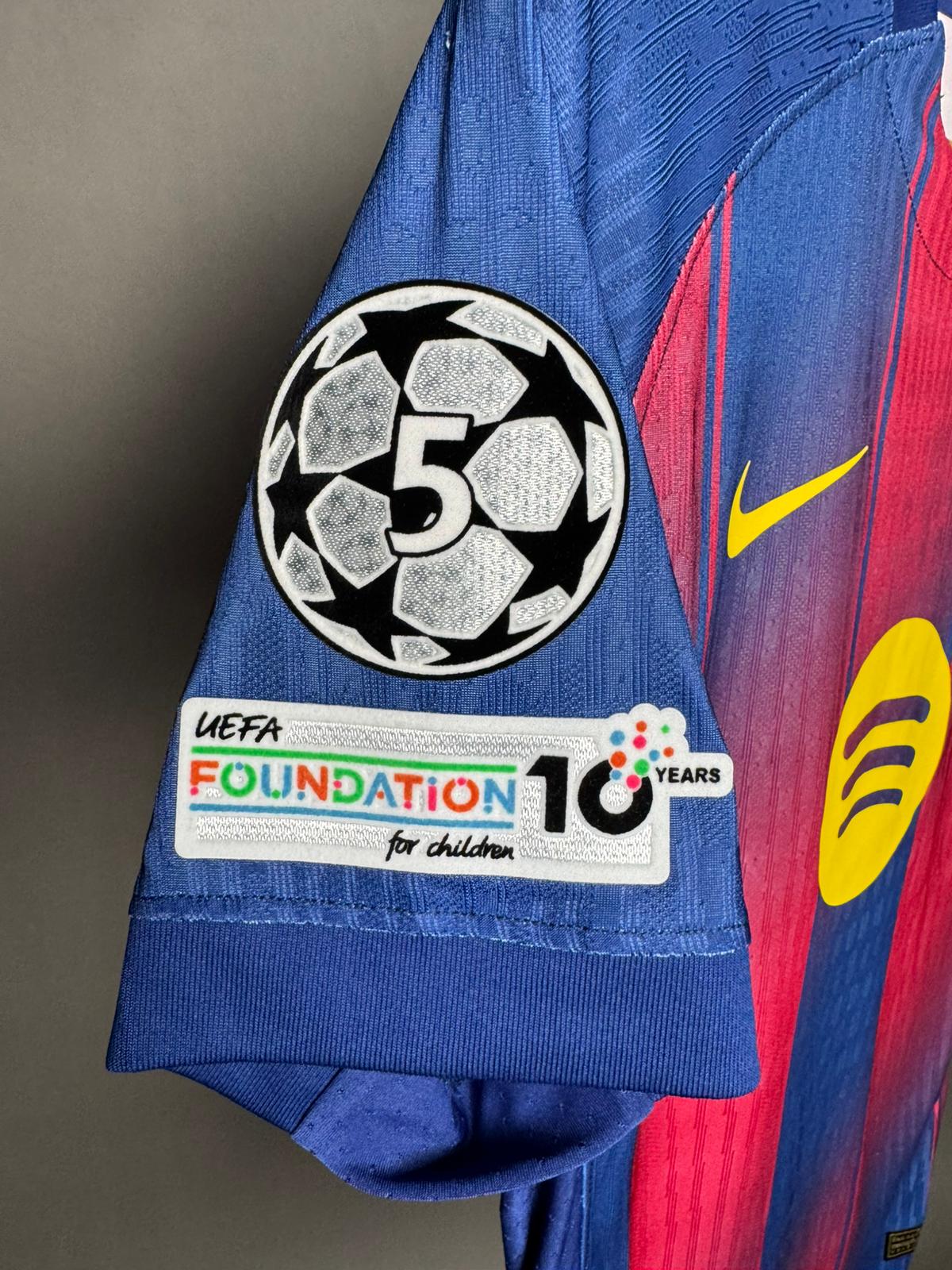 تيشيرت برشلونة الزي الاساسي بملصقات دوري أبطال اوروبا لموسم 25/26 بالأكمام القصيرة بنسخة اللاعبين