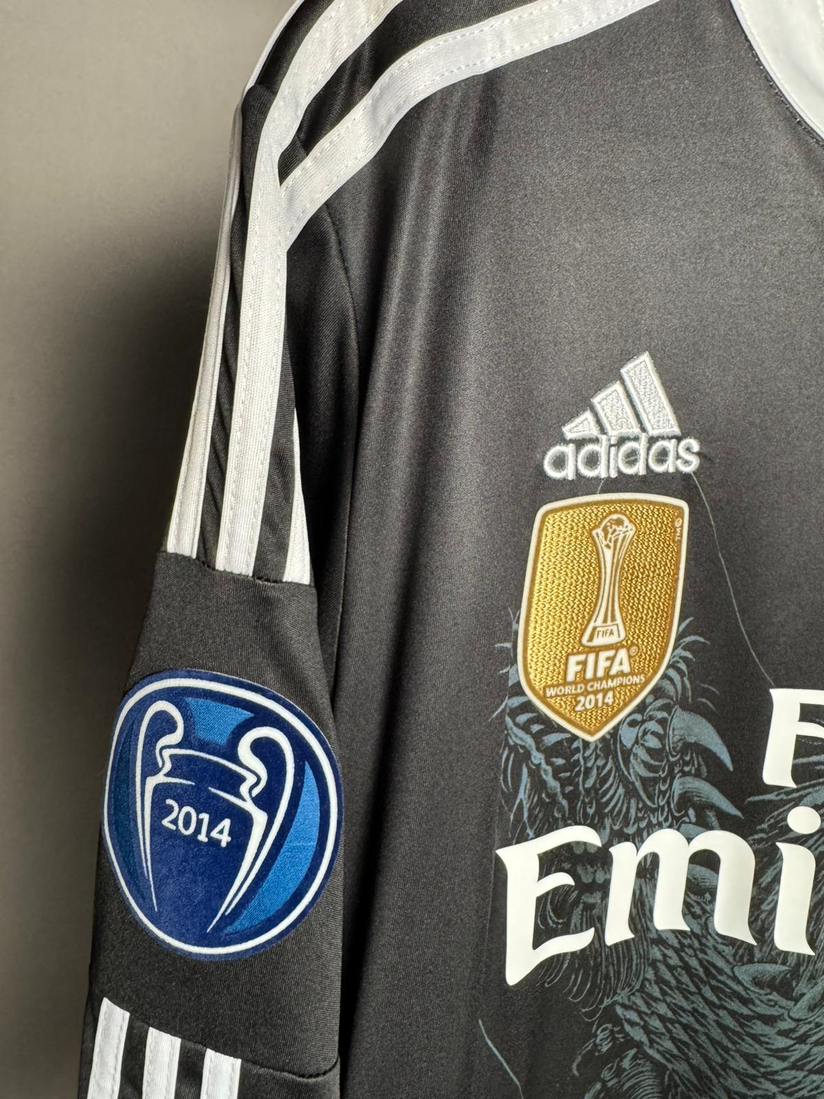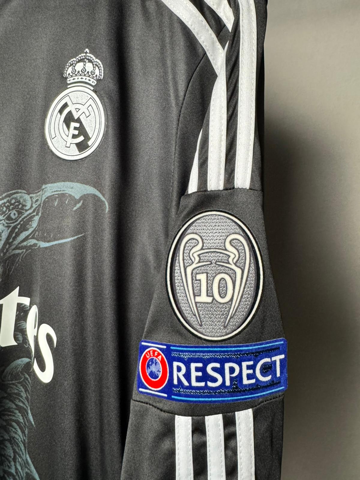 تيشيرت ريال مدريد الزي الاحتياطي الثالث بملصقات دوري أبطال اوروبا لموسم 2015 ريترو بالأكمام الطويلة