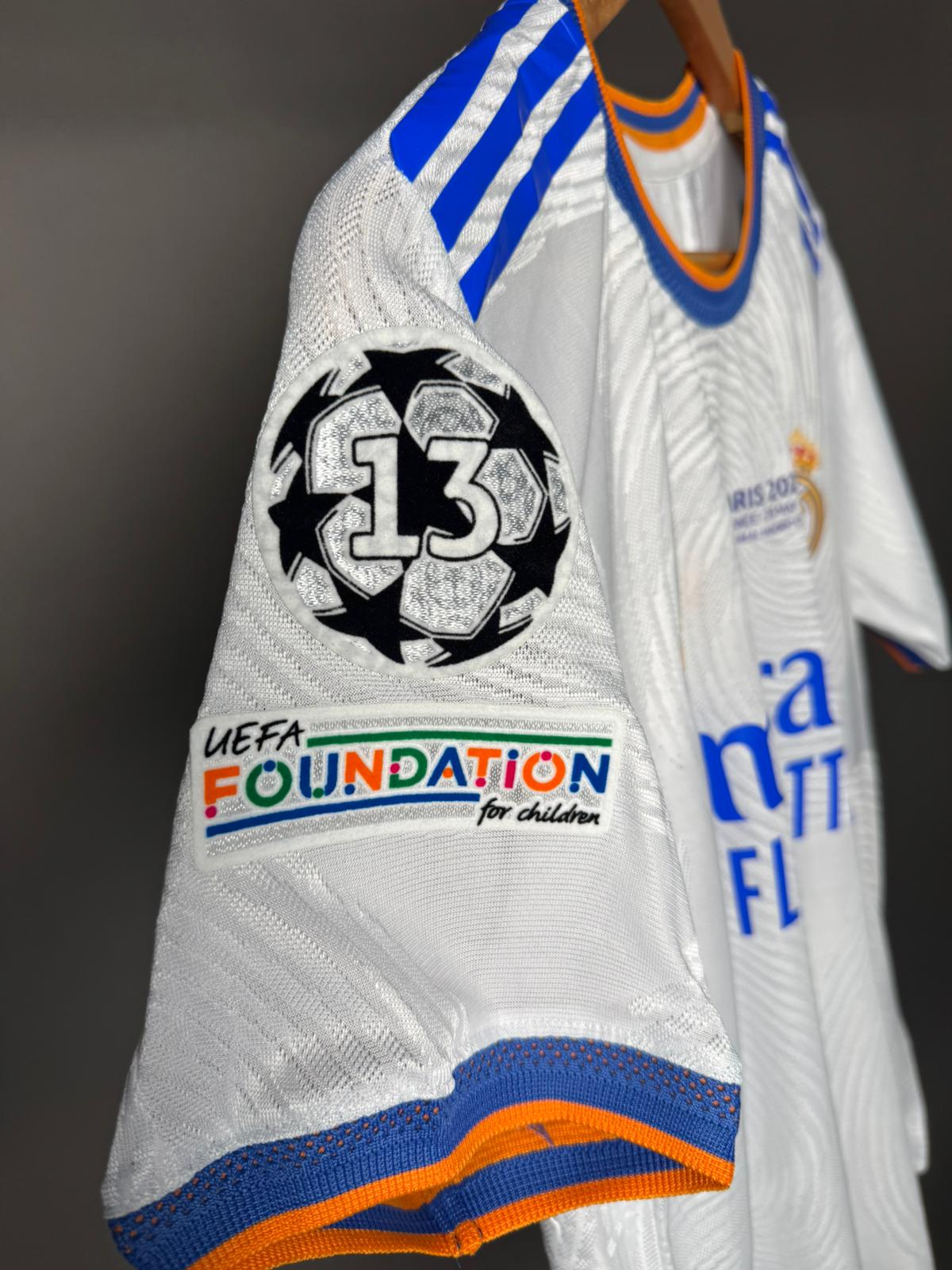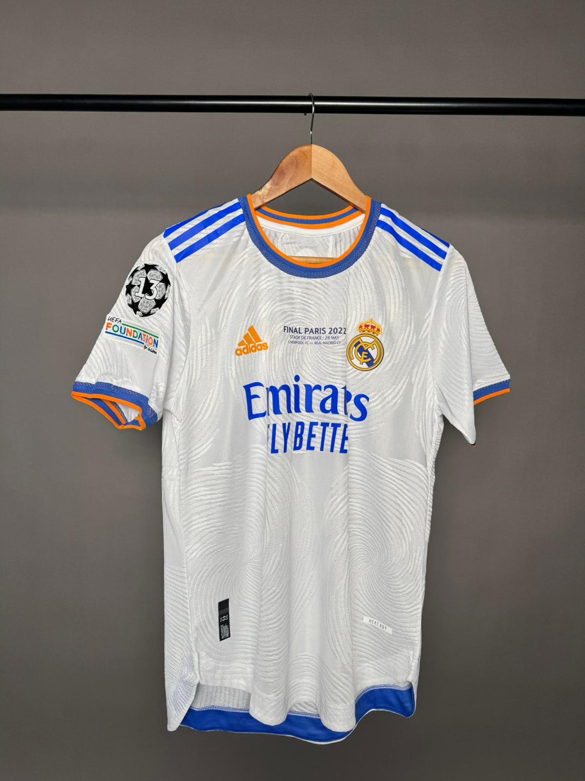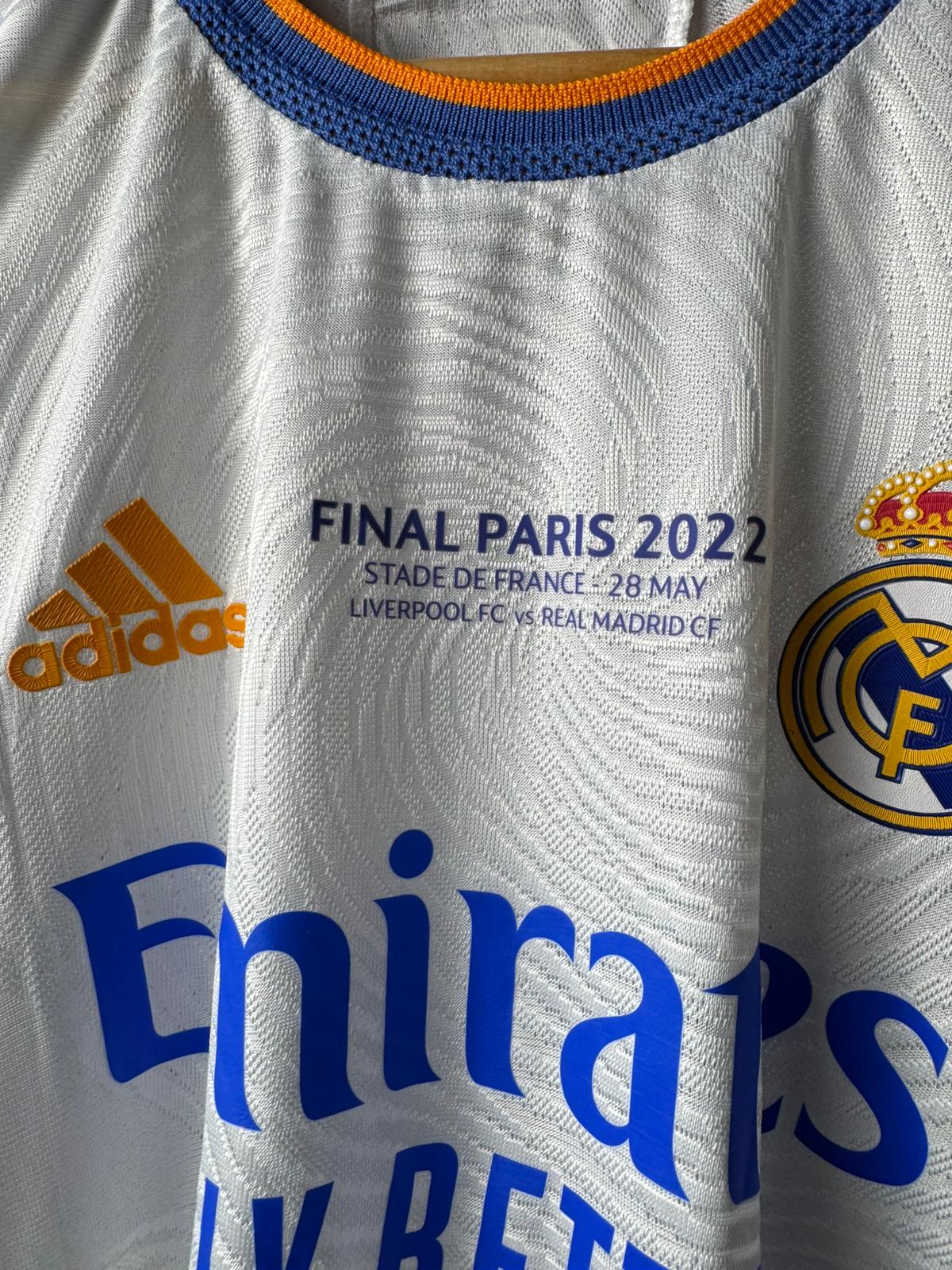 تيشيرت ريال مدريد الزي الأساسي لنهائي دوري أبطال اوروبا 2022 بنسخة اللاعبين بالأكمام القصيرة
